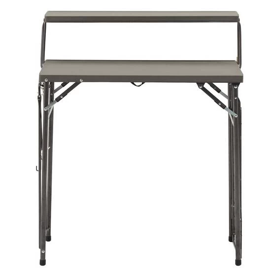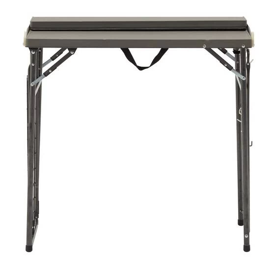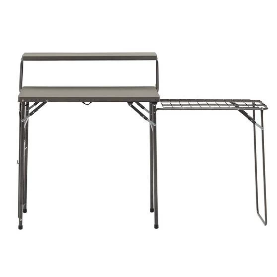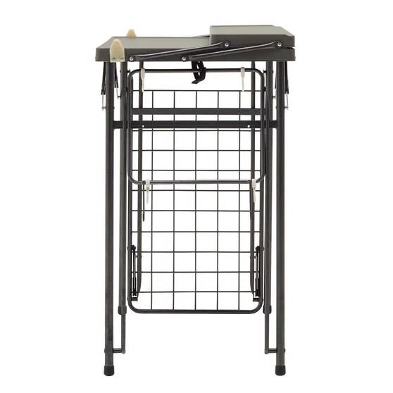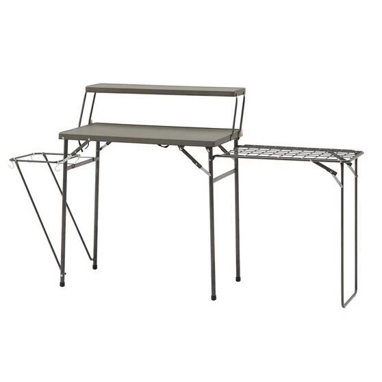 Take everything AND the kitchen sink with the Coleman Deluxe Camp Kitchen! This portable kitchen gives you the ultimate in outdoor food prop. It includes a 2-tiered food prep surface for slicing and storing ingredients, and a side stand which will fit most Coleman® stoves or coolers. The other side stand gives you room for a trash bag or removable sink (sold separately). When you’re finished cooking a delicious campside meal, it all packs up into a single storage system that you can carry one-handed!