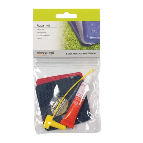 Don’t break the bank on a new air mattress if yours starts deflating. Patch it up with this Vinyl Bedding Repair Kit from Elemental! This handy air mattress repair kit provides an easy method to patch holes and tears in vinyl bedding, with two patches, one plug, and a tube of cement to fix them in place.
