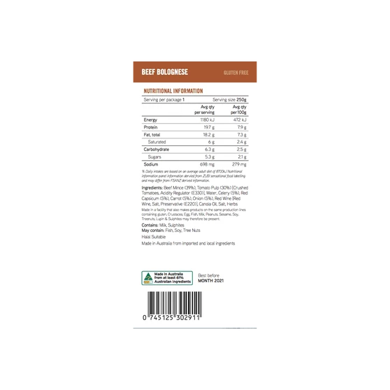 On Track Beef Bolognese lets you take the taste of delicious, home-made bolognese into the bush. Just place the pouch in boiling water for 2-3 minutes, or pour it into a pan over heat and stir until warm.