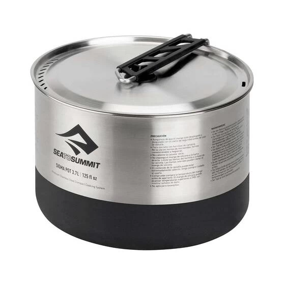 Engineered with premium marine-grade stainless steel, Sea to Summit’s SigmaPot range is strong, lightweight and offers a durable, abrasion resistant and easy-to-clean cooking surface for your outdoor camp kitchen needs. Designed for compact packing and convenient handling, the SigmaPot’s unique patent-pending PIVOT-LOCK handle rotates horizontally, locking in place for a secure and ergonomic grip when in use and folds away keeping the lid locked to the pot for low-profile storage. The textured base helps to keep your pot from sliding around on camping stoves, while the integrated LID KEEP cleverly stores the straining lid out of the dirt. The compact nesting SigmaPots are compatible with SigmaPans, DeltaLight range of camp dinnerware and also our aluminium AlphaPots and AlphaPans.