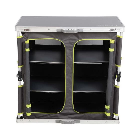 Create the ultimate glamping experience wherever you go with the Wanderer Express Instant Set Up Wardrobe 6 Shelf. This quick to assemble, portable wardrobe is ideal for storing your clothes, accessories and other personal belongings within your campsite. The cupboards include mesh on the rear, which not only allow air to flow through, but they help to keep those pesky bugs out! Don’t live out of a suitcase on your next adventure, keep organised with the Wanderer Express Instant Set Up Wardrobe 6 Shelf.