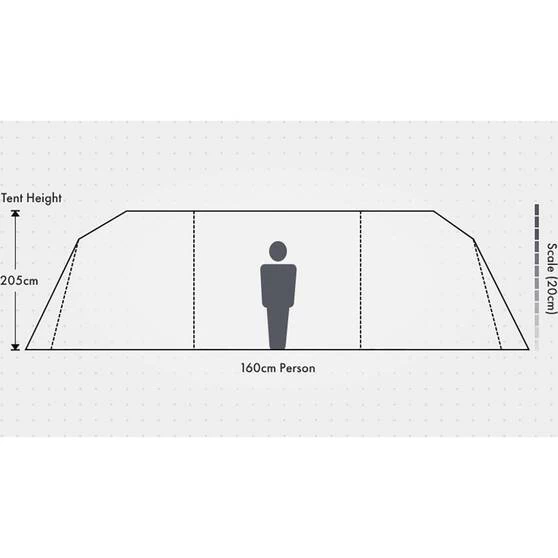 The design includes enough space for up to 12 people in a one room design, or a three room design with the help of the included room dividers. Roll up windows on the inner tent allow you to open and close the windows without going outside – ideal for allowing or restricting airflow in the middle of the night. Ideal for the summer months, this instant tent has been designed with UPF50+ for protection against the Australian sun and No-See-Um mesh on the windows to help keep those mosquitos out.